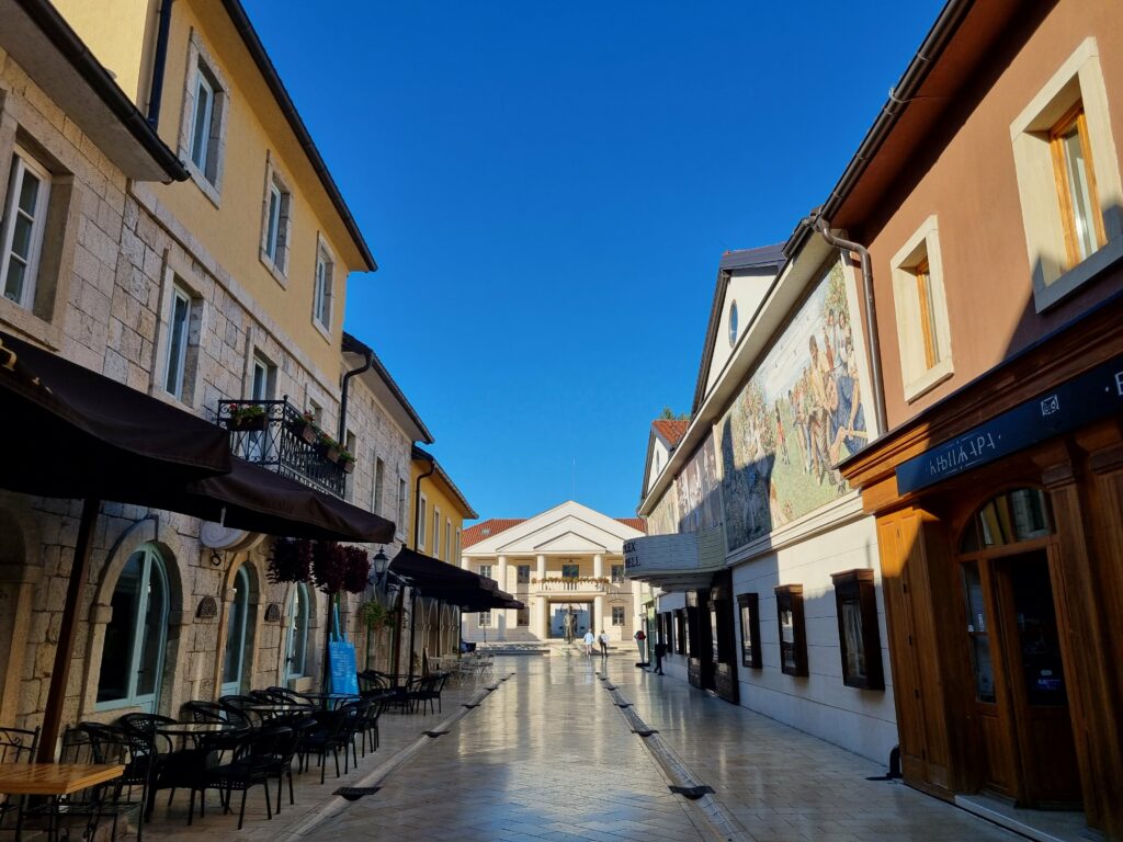 Ale Višegrad ma też drugą, zaskakującą twarz. Tuż obok mostu, na cyplu w widłach rzek Driny i Rzav, trafiliśmy do Andrićgradu (Kamiennego Miasta). To nie zabytek, lecz współczesny projekt słynnego reżysera Emira Kusturicy. Miasteczko, wybudowane od zera w 2014 roku, ma być hołdem dla Ivo Andricia i łączyć style historyczne – od Bizancjum po klasycyzm. Wrażenie jest specyficzne – spacerując tam, czuliśmy się trochę jak na planie filmowym. Wszystko jest z kamienia, ładne i zadbane, ale w kontraście do autentycznego, starego mostu, wydaje się nieco sztuczne. Mimo to, warto tam zajrzeć, choćby po to, by zobaczyć ten architektoniczny eksperyment.