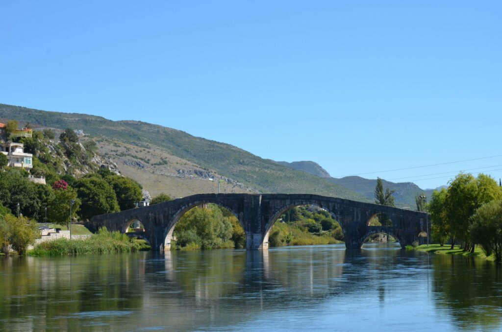 Sercem miasta jest plac pod platanami. To nie metafora – gigantyczne drzewa dają cień całemu rynkowi, tworząc naturalny dach nad dziesiątkami stolików kawiarnianych. Spacer po Starym Mieście (Kastel) zajął nam niespieszną godzinę. Nie ma tu spektakularnych muzeów, jest za to klimat: kamienne uliczki, rzeka Trebišnjica z zabytkowym mostem Arslanagicia i poczucie, że nikt nigdzie się nie spieszy. To najlepsze miejsce na pierwszą bośniacką kawę i wymianę waluty.